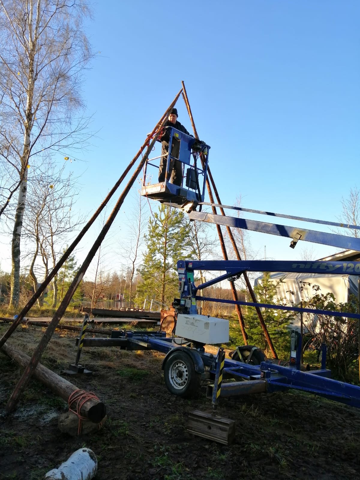 Eihän se ihan helppoa ole päästä korkealle. Traktorin katoltahan tuota suunnittelin ensin toteuttaa.