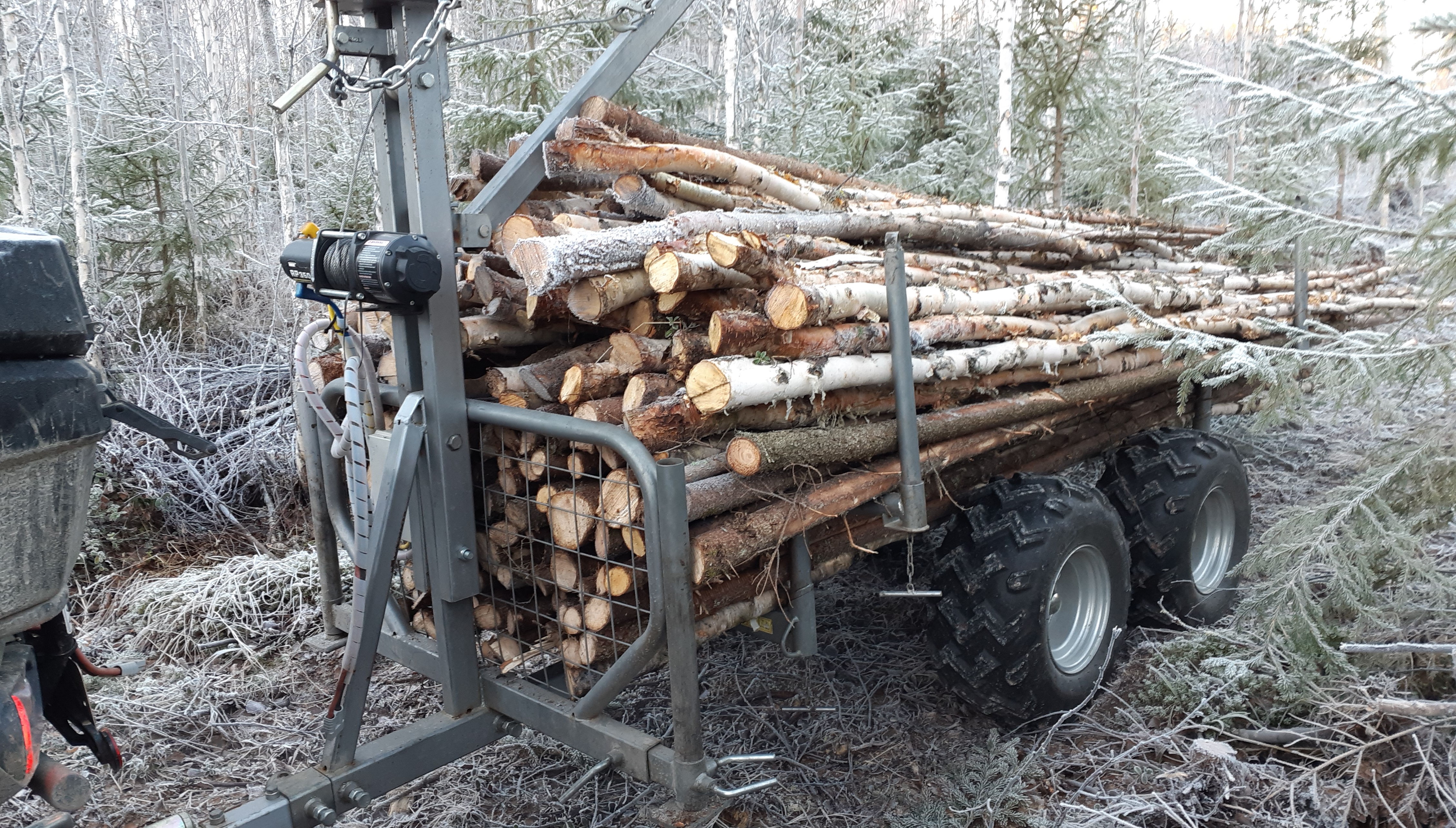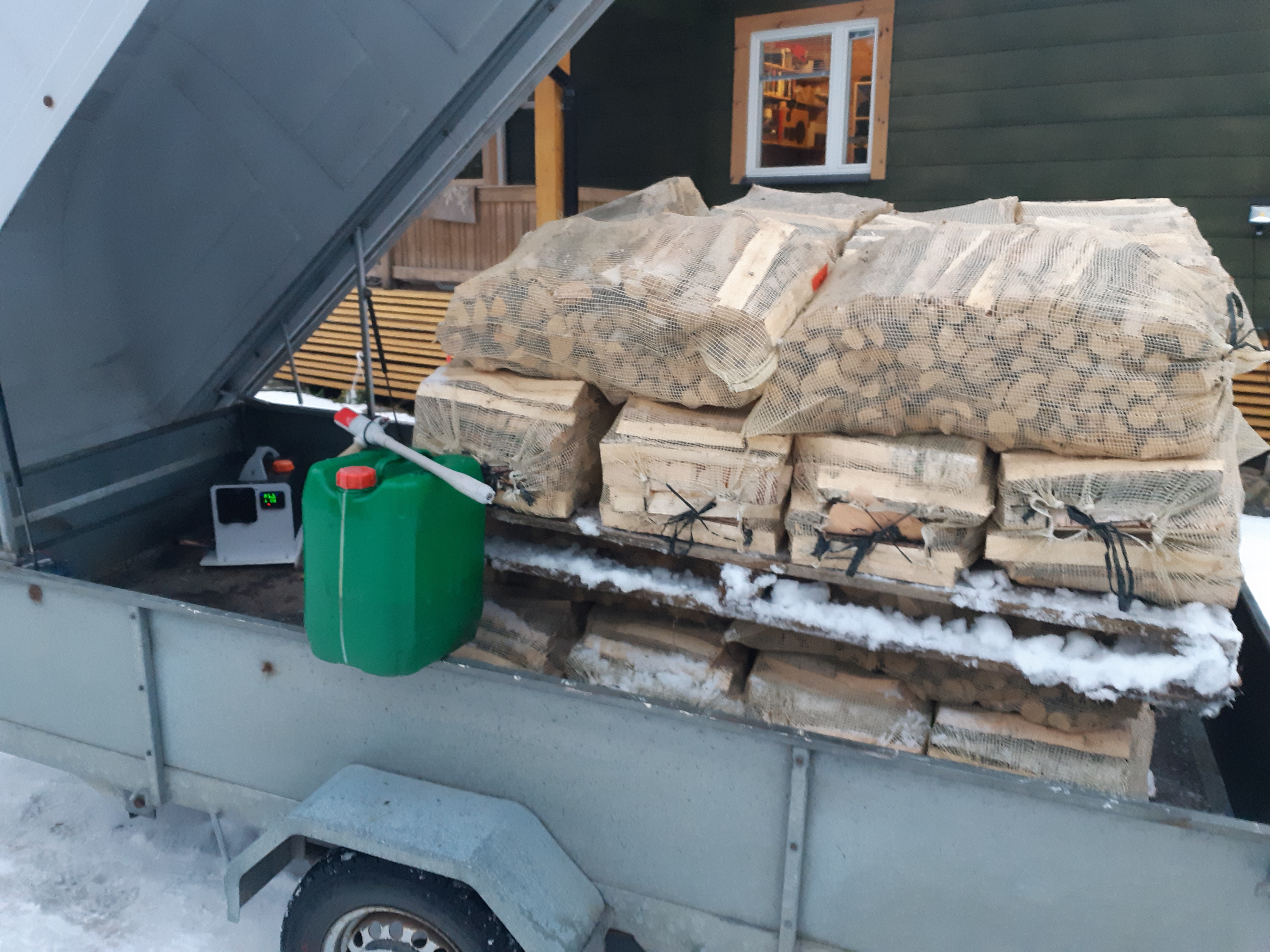 Monet ovat rakentaneet varastokontista kuivausaseman puille. Olin jo sellaista tilaamassa, mutta kuinka saan puut konttiin ja pois sieltä? Minulla ei ole sopivaa konetta siihen. Sittenpä ajattelin kokeilla puiden lämmittämistä suoraan peräkärryssä.