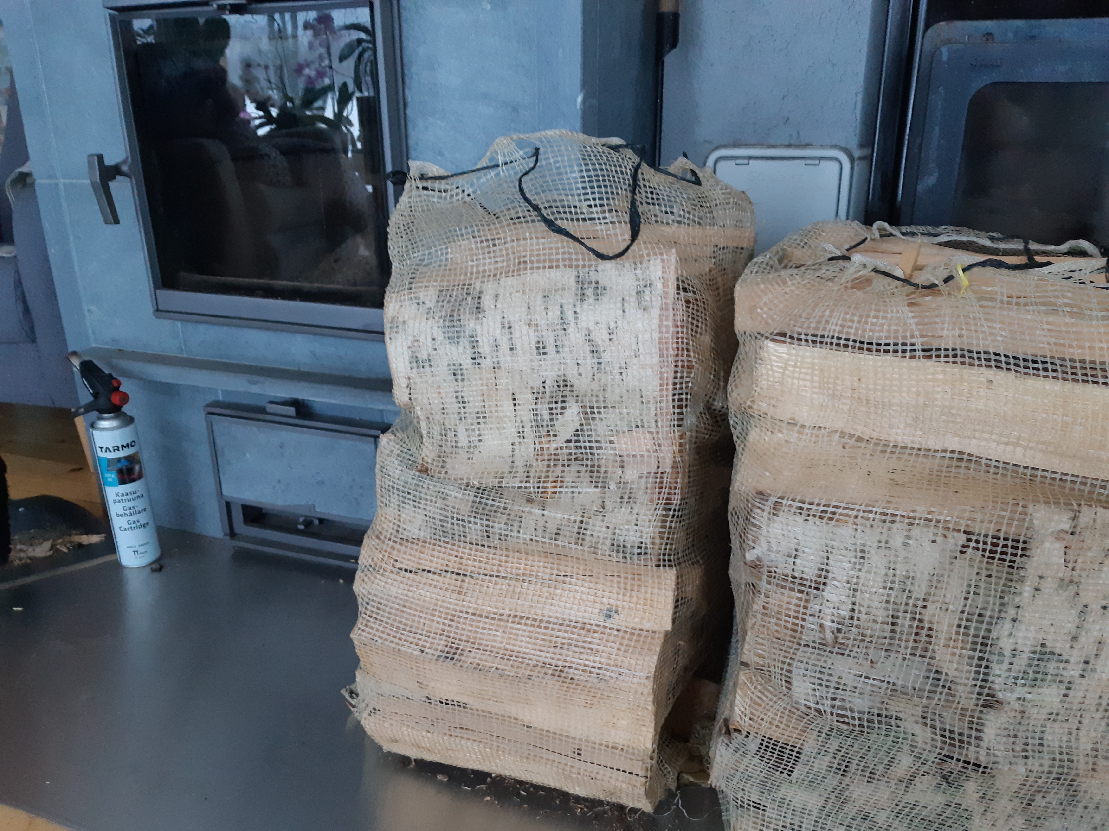 Syksyllä tehdyistä klapeista suuren osan sain mahtumaan latoihin, mutta paljon jäi palstalle. Puolet niistä oli tuoreita mutta loput elokuussa "rasiin" kaadettuja koivuja ja haapoja. Kukapa niitä olisi edes ostanutkaan koska ne eivät ole vielä kuivia.